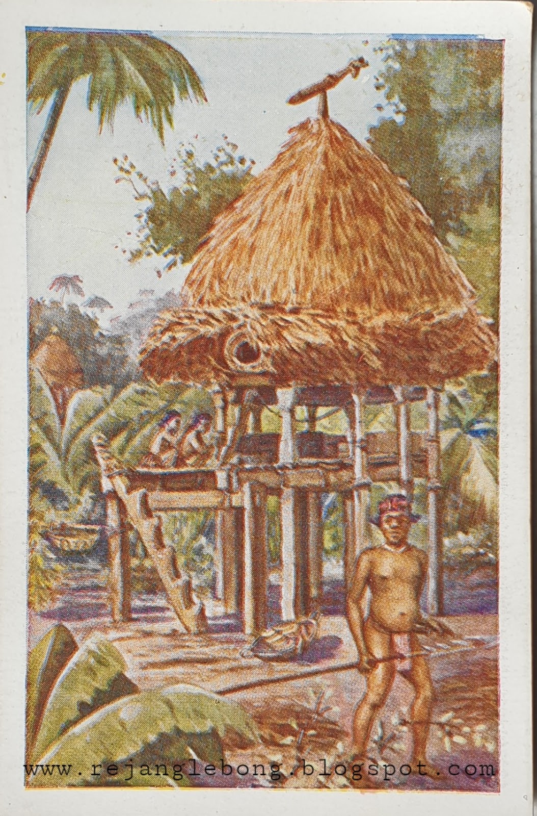 Gambar rumah Enggano ini dari kartu yang dibuat zaman penjajahan Belanda. Rumah ini sudah tidak dijumpai lagi di Pulau Enggano propinsi Bengkulu